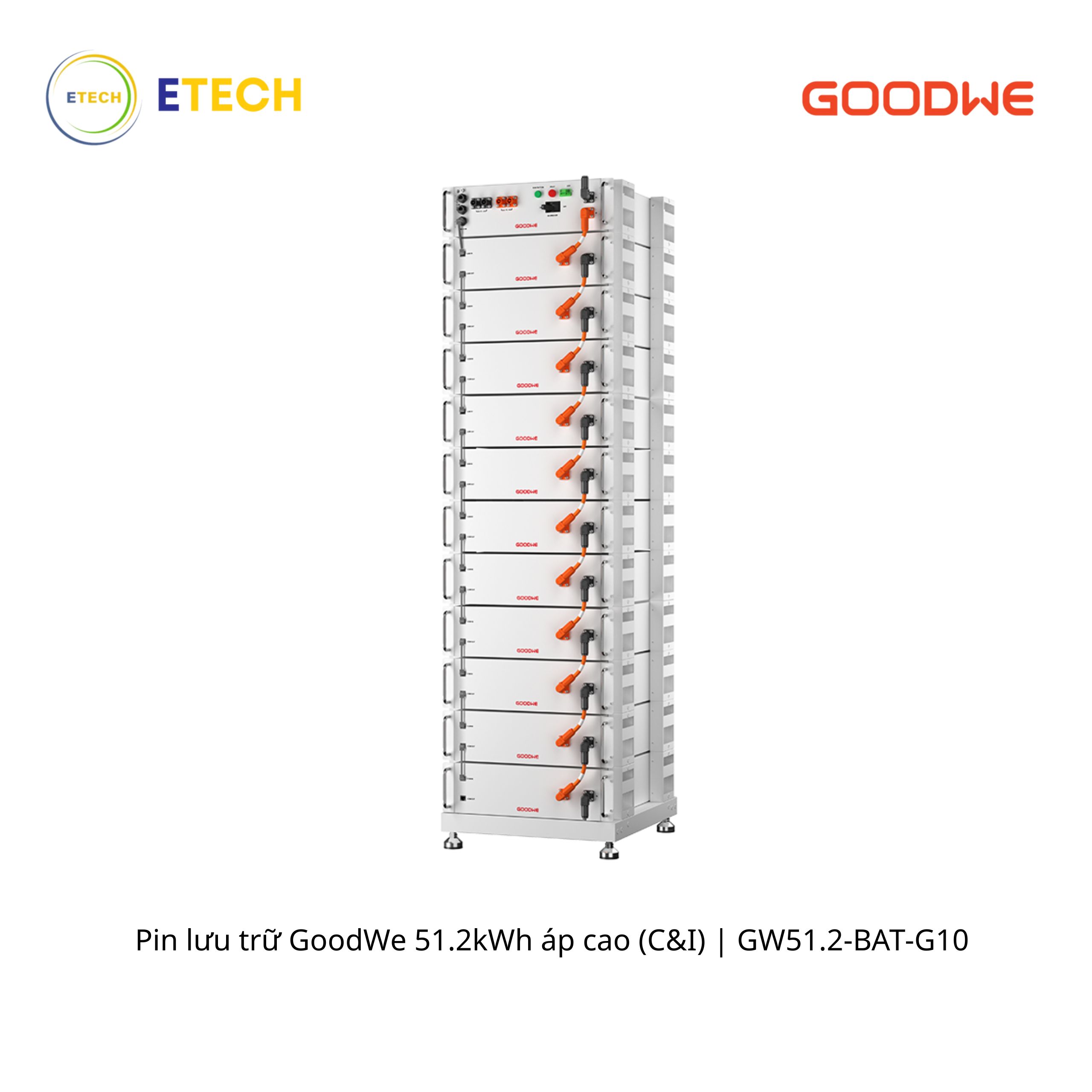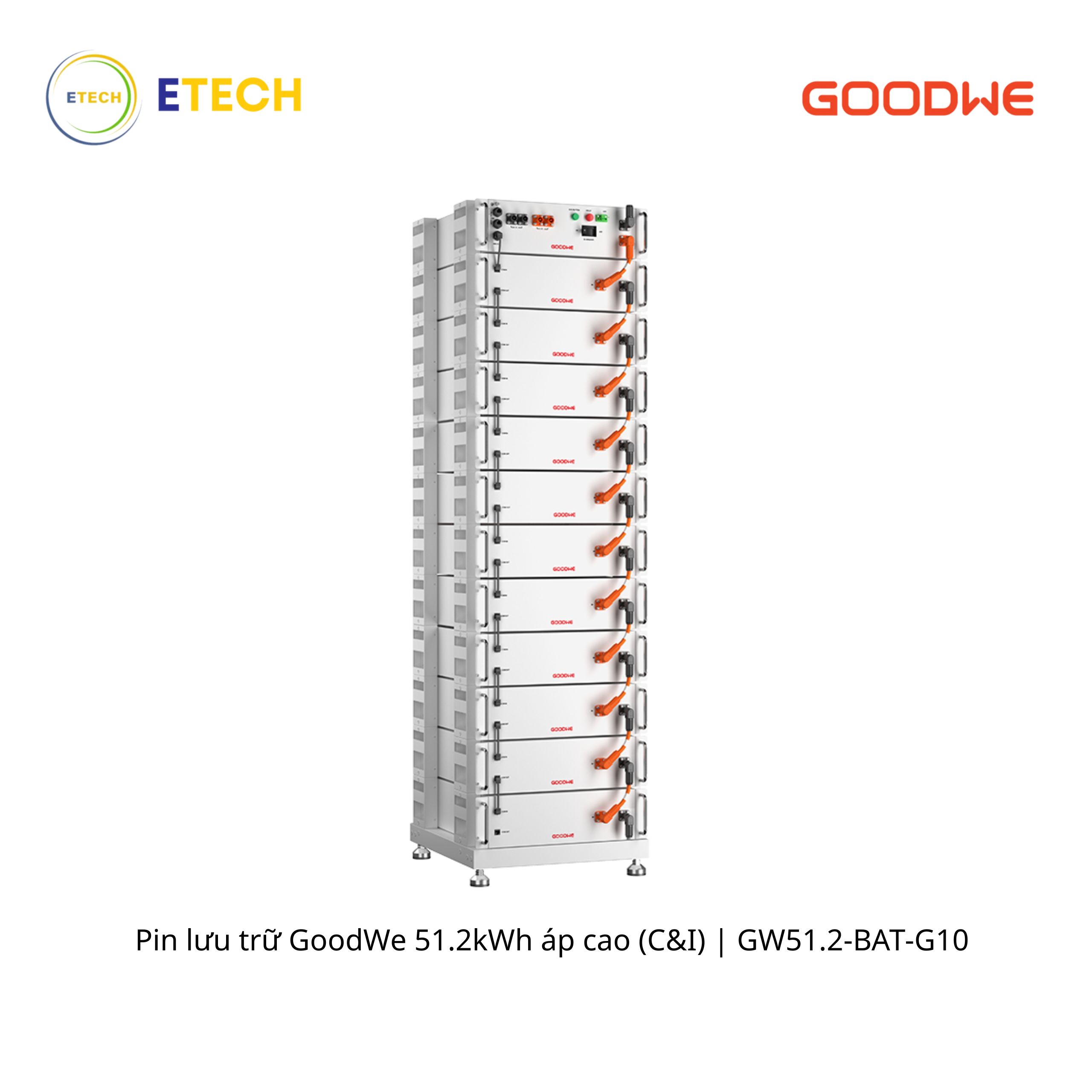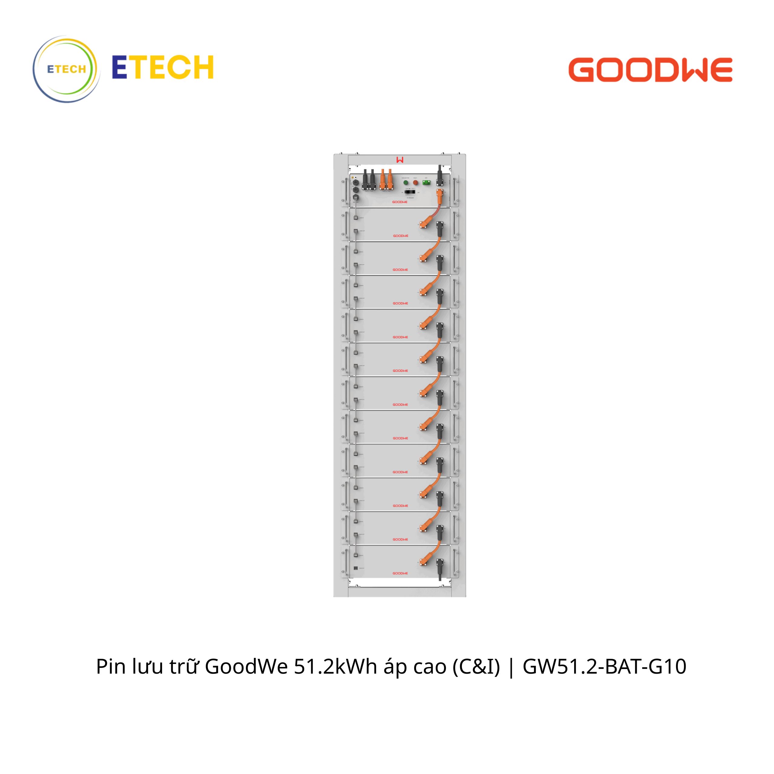 Pin Sê-ri BAT của GoodWe, với các mức công suất 51,2kWh, là loại pin lithium điện áp cao được thiết kế dành riêng cho các ứng dụng thương mại và công nghiệp nhỏ (C&I) với hiệu suất vượt trội. Pin này có thể kết hợp với biến tần ET 50kW của GoodWe để tạo ra một hệ thống lưu trữ năng lượng hiệu quả và tiết kiệm chi phí, giúp quản lý việc sử dụng năng lượng nhằm giảm tải đỉnh và tiết kiệm điện năng.