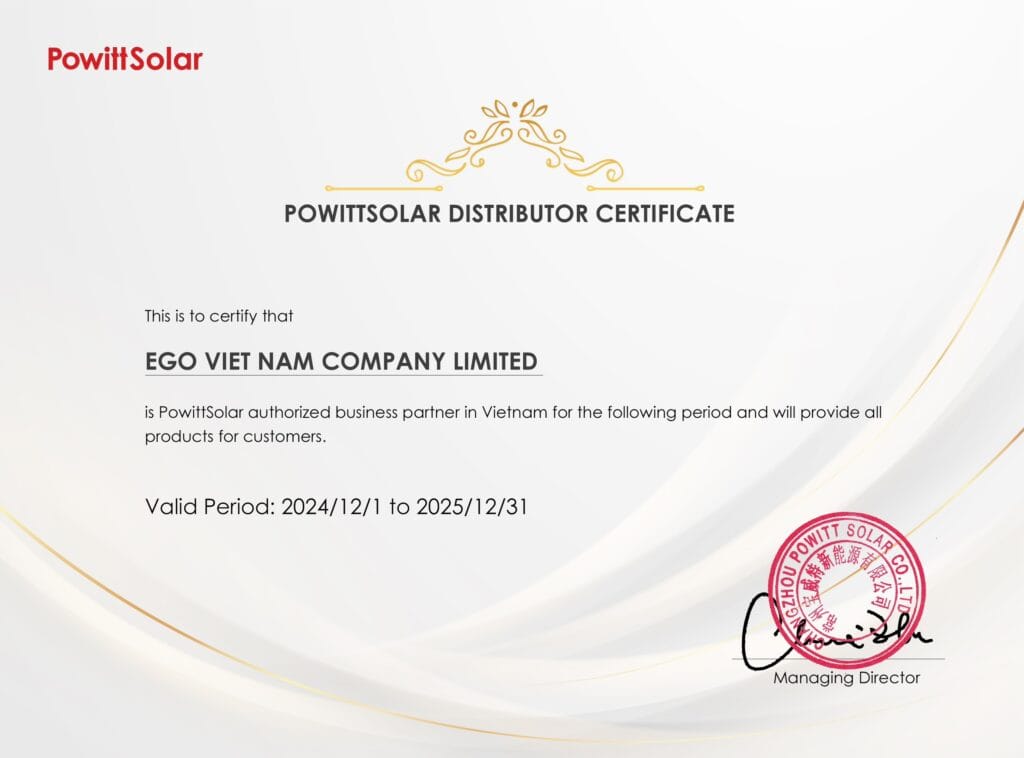 Công ty TNHH THƯƠNG MẠI KỸ THUẬT QUỐC TẾ EGO tự hào thông báo việc ký kết thỏa thuận trở thành đối tác phân phối chính thức của POWITTSOLAR tại Việt Nam. Đây là một bước tiến quan trọng trong việc mang đến các giải pháp năng lượng mặt trời chất lượng cao, bao gồm các sản phẩm tấm pin N-Type HJT và N-Type Topcon.
